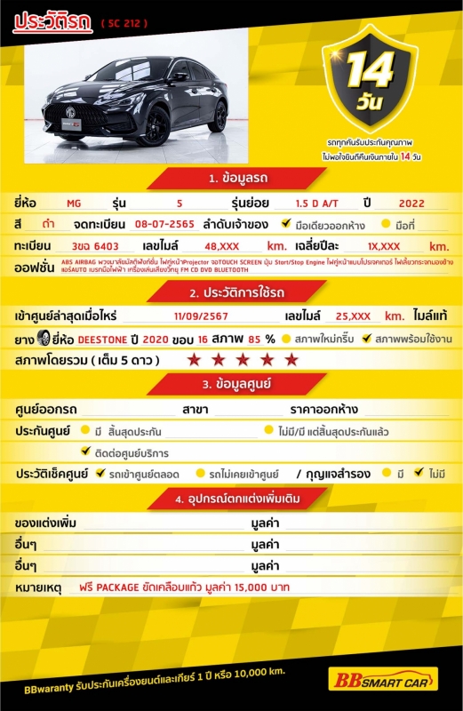 BB Care Plus รับประกันหลังการขาย สูงสุด 2 ปี หรือ 20,000 km.