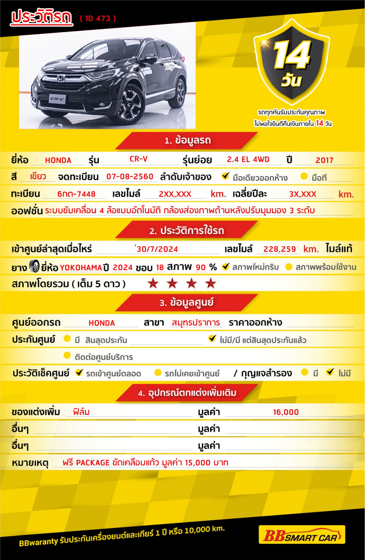 - BB Care Plus รับประกันหลังการขาย สูงสุด 2 ปี หรือ 20,000 km..