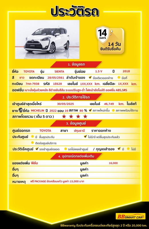 - BB Care Plus รับประกันหลังการขาย สูงสุด 2 ปี หรือ 20,000 km..
