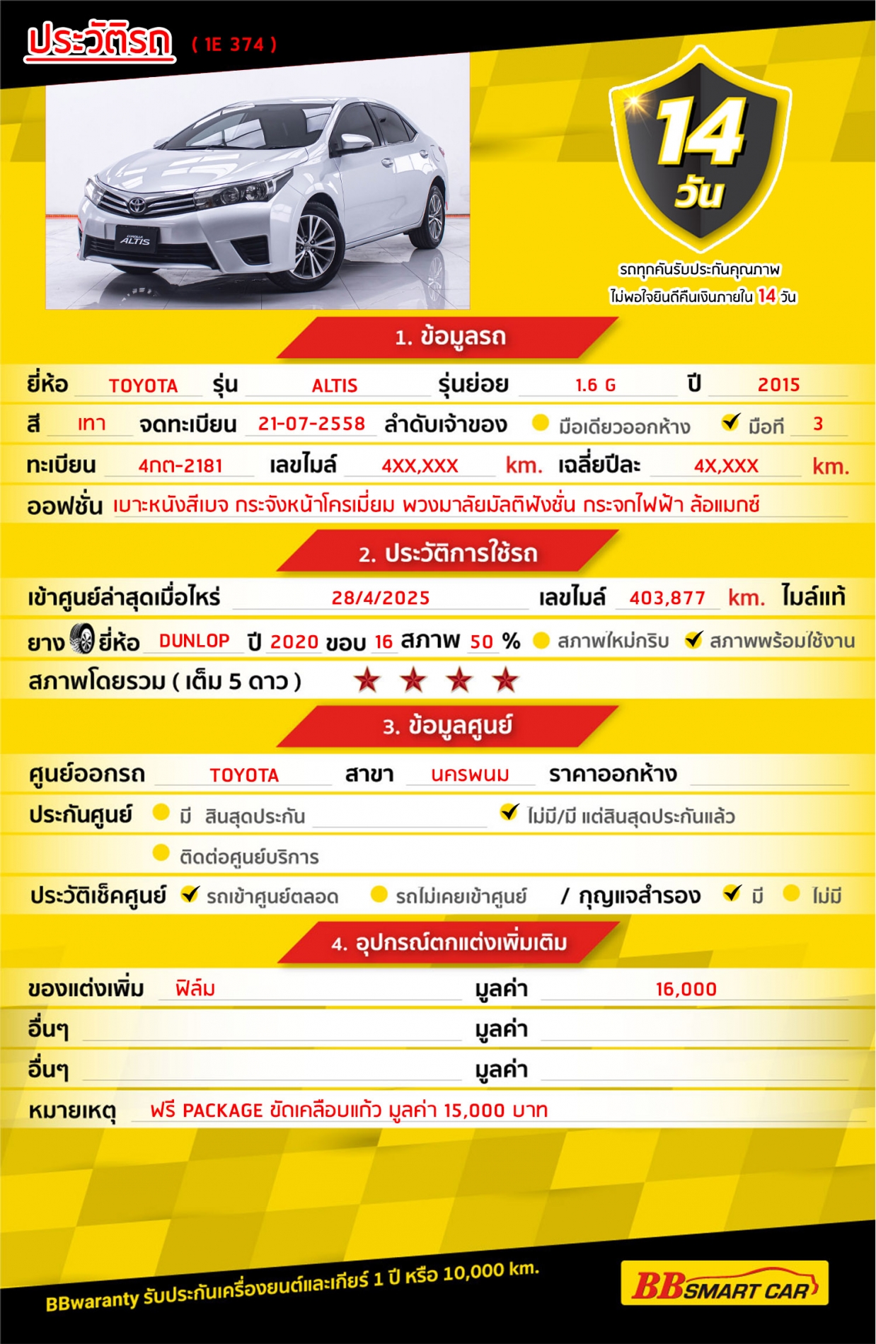 รหัสรถ 1E374 ราคา 279,000 บาท ผ่อนเพียง 4,346 บาท