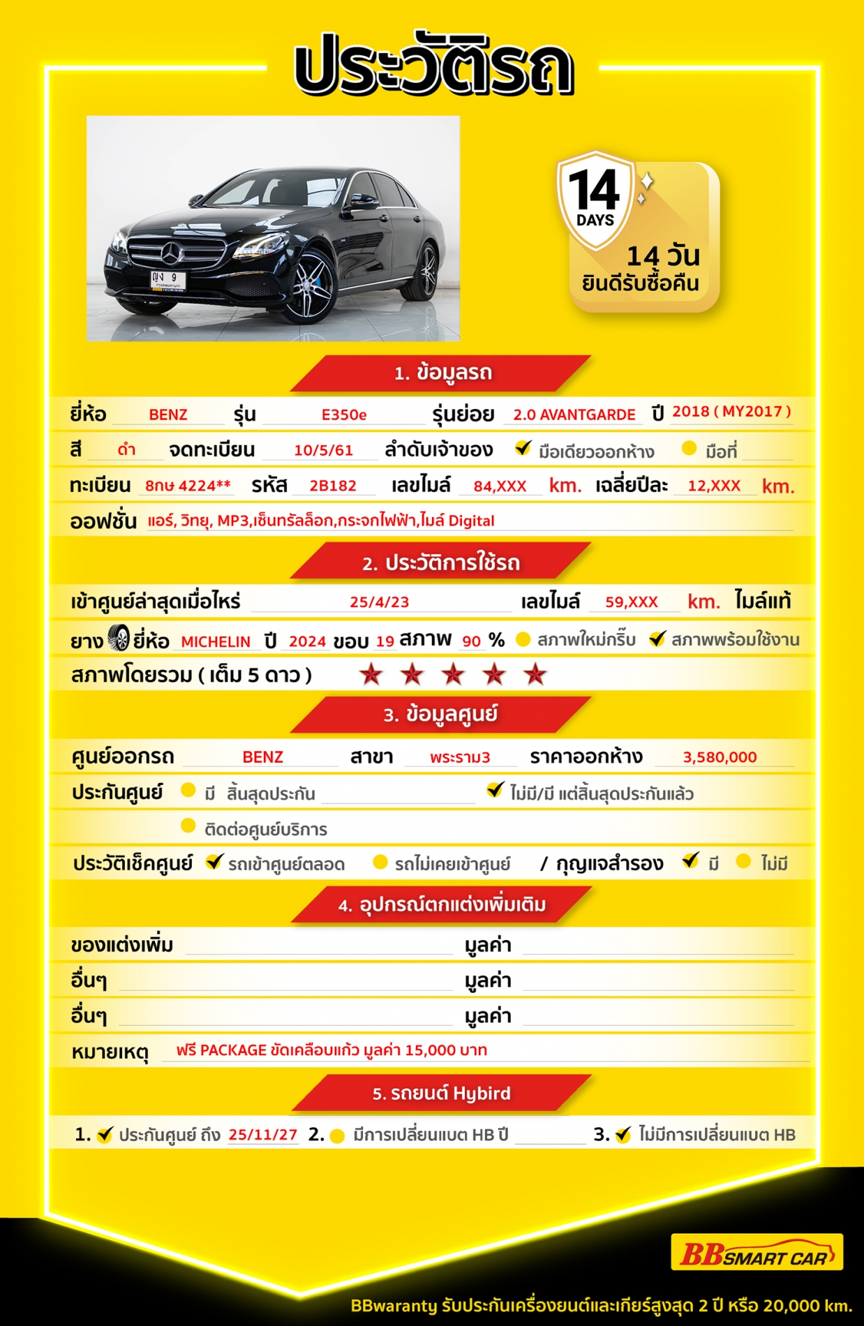 การรับประกันหลังการขาย BB Care Plus สูงสุด 2 ปี หรือ 20,000 km. ด้วยช่างที่ผ่านการอบรมจากศูนย์ชั้นนำของประเทศ