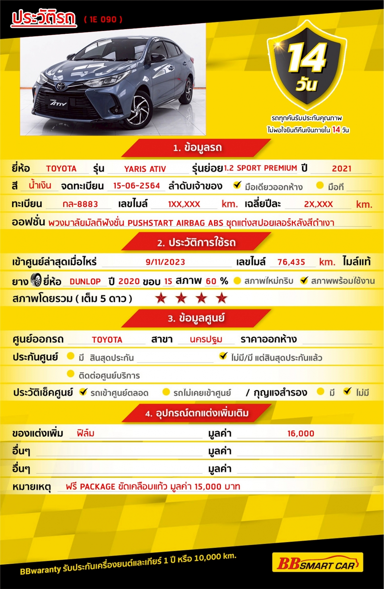 Model. : YARIS ATIV Grade. : 1.2 SPORT PREMIUM