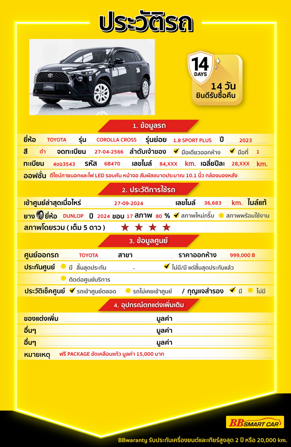 BB Care Plus รับประกันหลังการขาย สูงสุด 2 ปี หรือ 20,000 km.