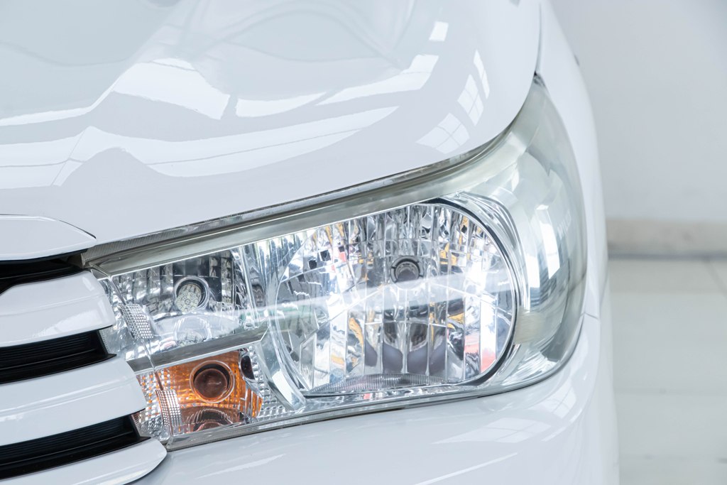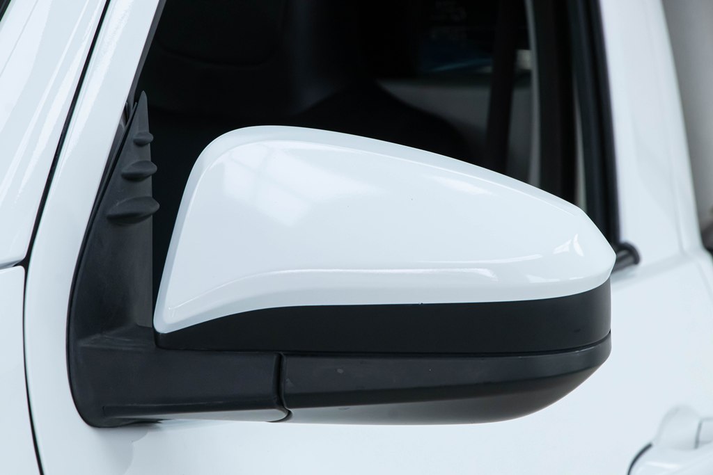 ภายนอก. บอดี้รถสีขาว มือจับสีเดียวกับตัวรถ กระจังหน้า ช่องดักลม ฝากระโปรงหน้า ไฟหน้าขาวสะอาด