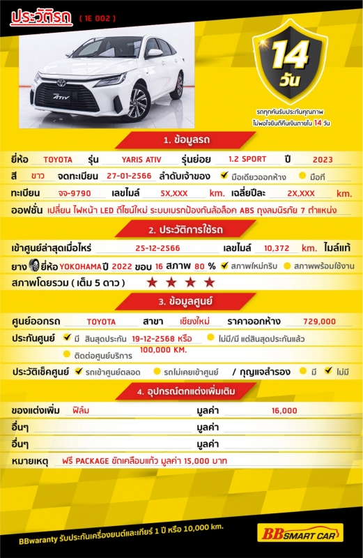 - BB Care Plus รับประกันหลังการขาย สูงสุด 2 ปี หรือ 20,000 km.