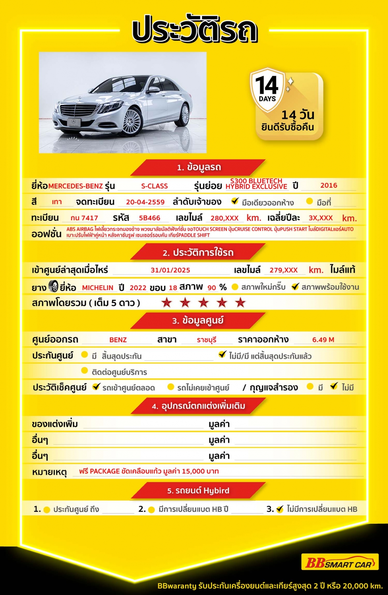 Model. : S-CLASS Grade. : S300 BLUETECH HYBRID EXCLUSIVE W222