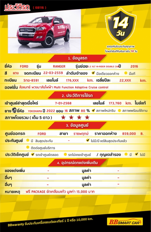 การรับประกันหลังการขาย BB Care Plus สูงสุด 2 ปี หรือ 20,000 km. ด้วยช่างที่ผ่านการอบรมจากศูนย์ชั้นนำของประเทศ