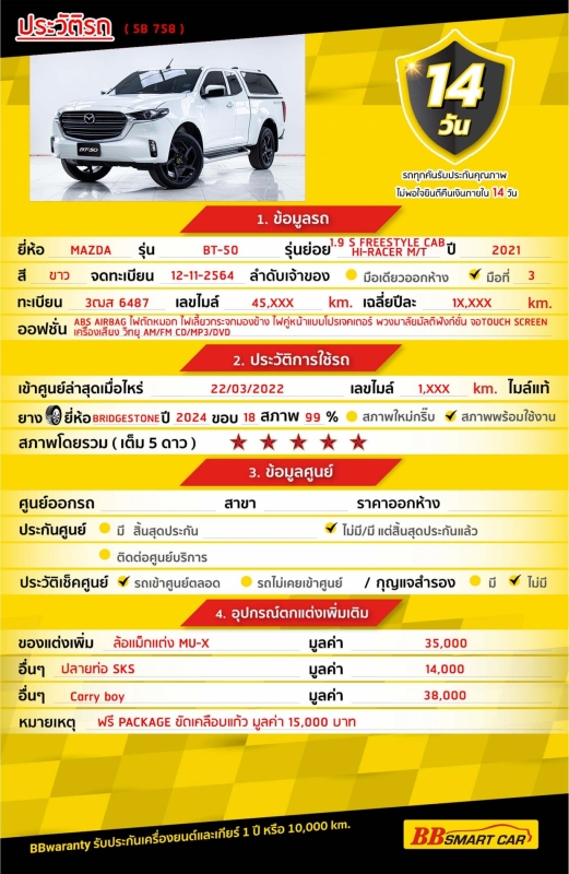 BB Care Plus รับประกันหลังการขาย สูงสุด 2 ปี หรือ 20,000 km.