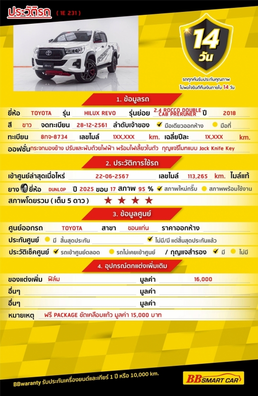 BB Care Plus รับประกันหลังการขาย สูงสุด 2 ปี หรือ 20,000 km..