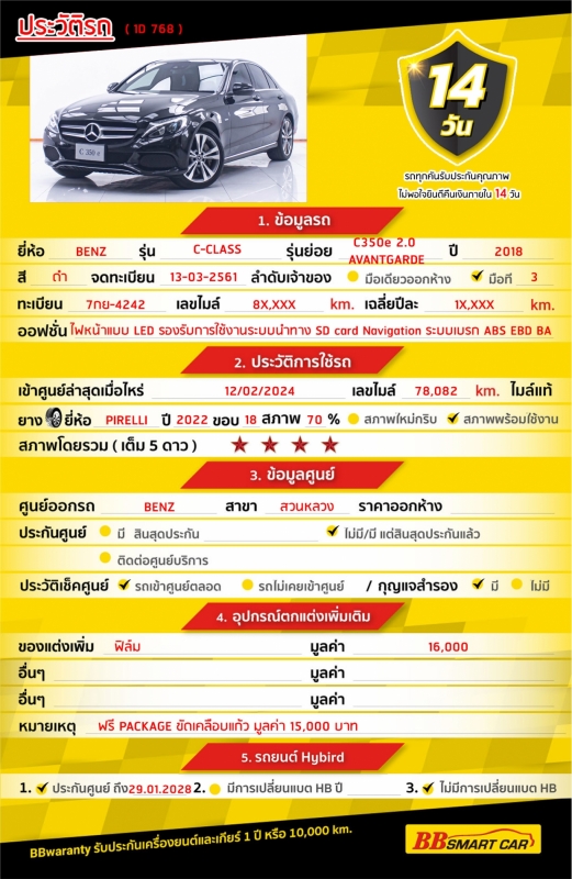 - BB Care Plus รับประกันหลังการขาย สูงสุด 2 ปี หรือ 20,000 km.
