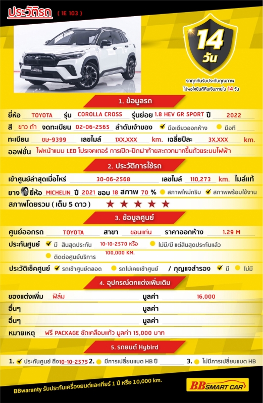 - BB Care Plus รับประกันหลังการขาย สูงสุด 2 ปี หรือ 20,000 km..