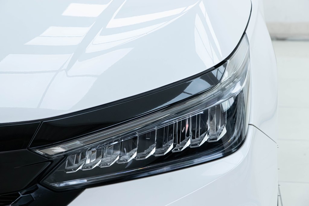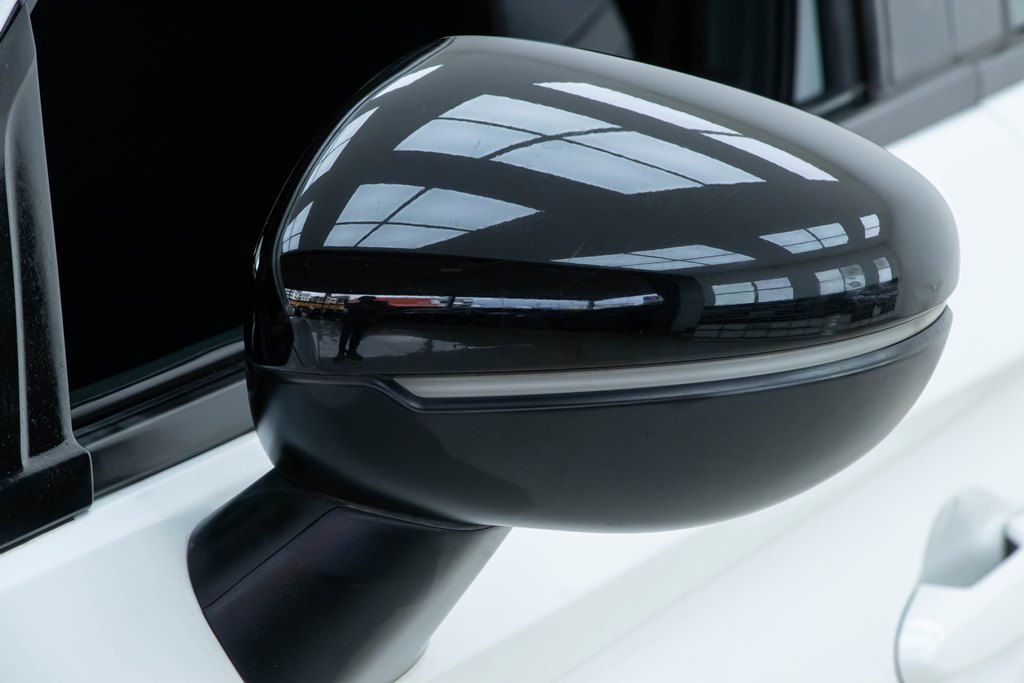 ภายนอก. รถสีขาวสุดหรู มาพร้อม ล้อแม็ก ไฟเลี้ยวกระจกมองข้าง กระจกมองข้างพับไฟฟ้า ไฟตัดหมอก