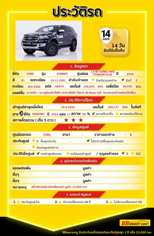 การรับประกันหลังการขาย BB Care Plus สูงสุด 2 ปี หรือ 20,000 km. ด้วยช่างที่ผ่านการอบรมจากศูนย์ชั้นนำของประเทศ