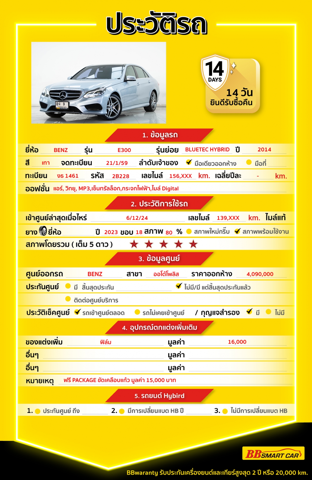 BB Care Plus รับประกันหลังการขาย สูงสุด 2 ปี หรือ 20,000 km.
