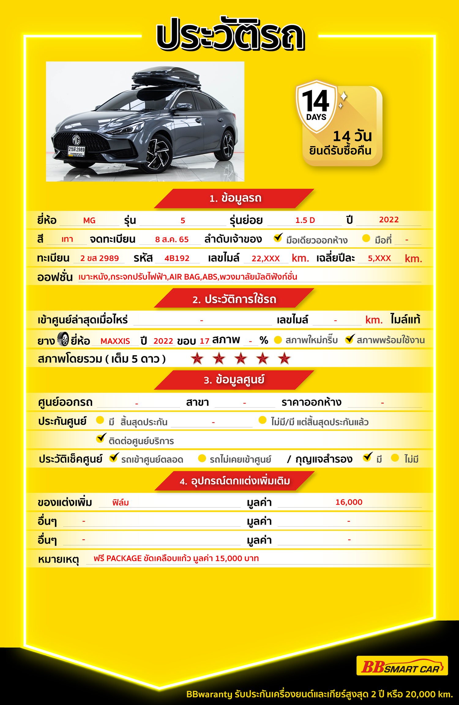 BB Care Plus รับประกันหลังการขาย สูงสุด 2 ปี หรือ 20,000 km.