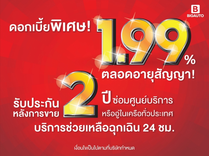 "ดอกเบี้ยเริ่มต้น 1.99% ตลอดอายุสัญญา พร้อมรับประกันหลังการขายนาน 2 ปี"