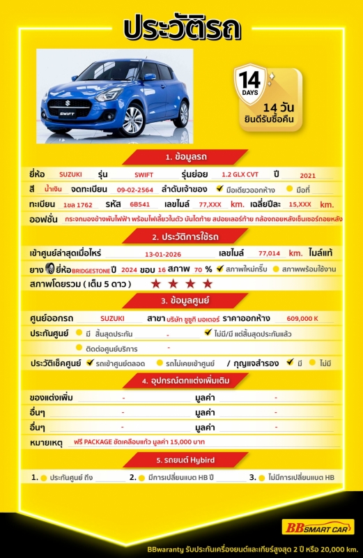 BB Care Plus รับประกันหลังการขาย สูงสุด 2 ปี หรือ 20,000 km.