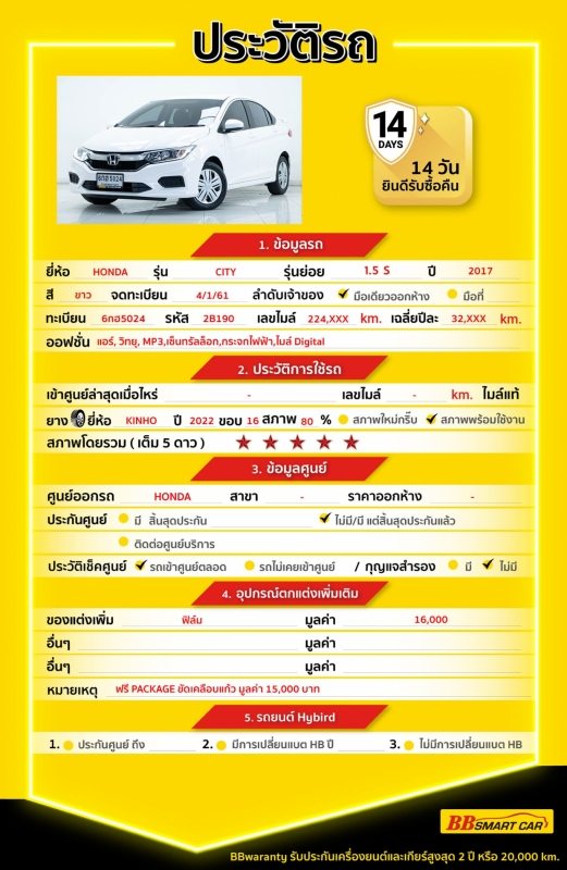 BB Care Plus รับประกันหลังการขาย สูงสุด 2 ปี หรือ 20,000km.