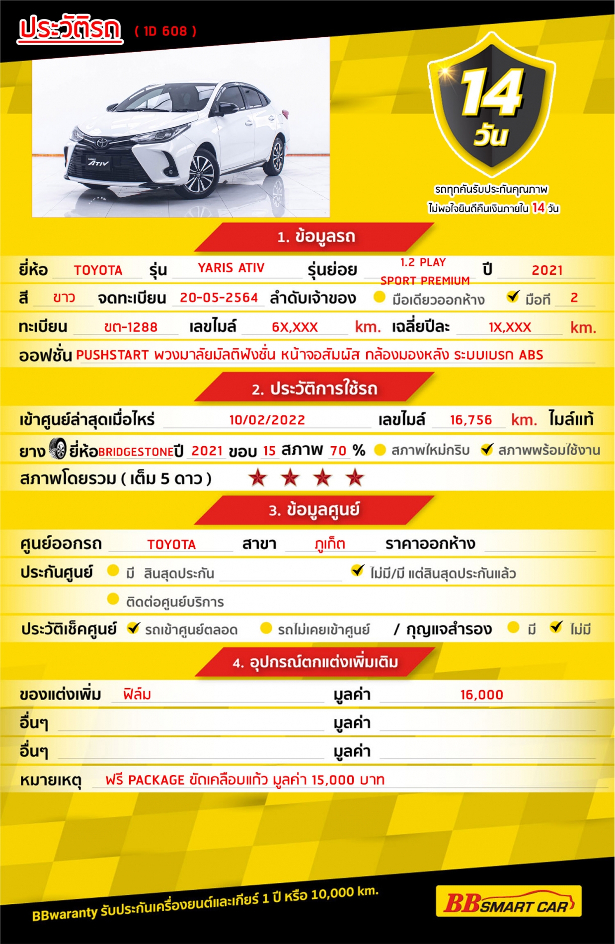 Model. : YARIS ATIV Grade. : 1.2 PLAY SPORT PREMIUM