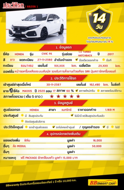 การรับประกันหลังการขาย BB Care Plus สูงสุด 2 ปี หรือ 20,000 km. ด้วยช่างที่ผ่านการอบรมจากศูนย์ชั้นนำของประเทศ