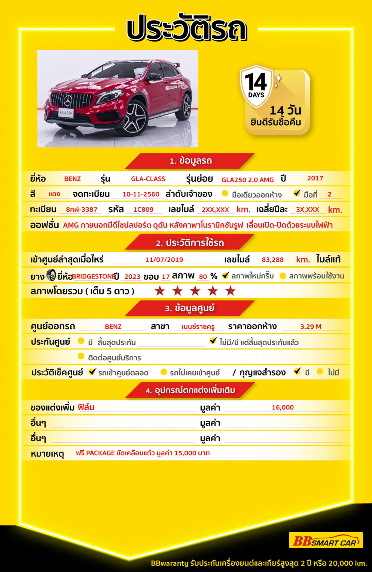 - BB Care Plus รับประกันหลังการขาย สูงสุด 2 ปี หรือ 20,000 km.