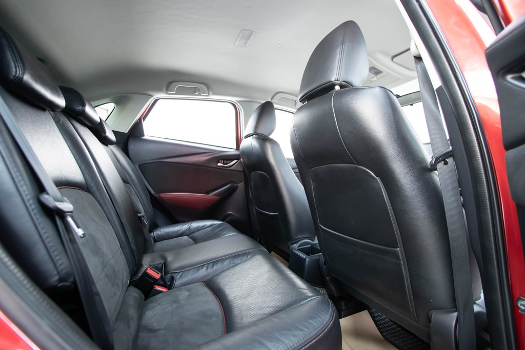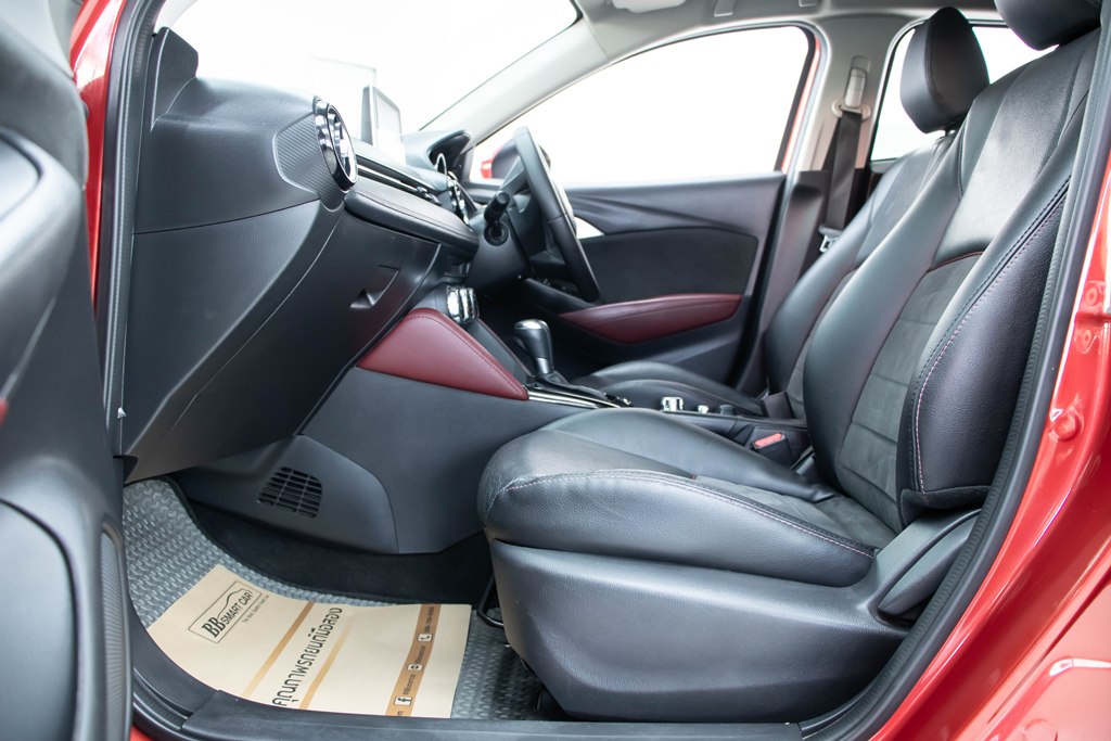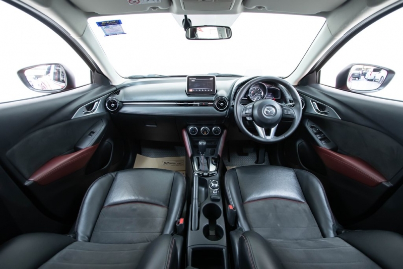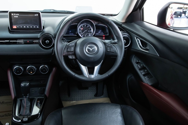 ภายใน. อัพเกรดเติมเต็มความหรูบวกความสปอร์ตไว้ใน Crossover รุ่นนี้ไม่ว่าจะเป็น วัสดุการตกแต่งแผงคอนโซลหน้ากับแผงประตูตกแต่งด้วยวัสดุผ้าคล้ายหนังกลับ แผงคอนโซลหน้าคับคั่งด้วยฟังก์ชั่นหลากหลายทั้ง ระบบ MZD Connect พร้อมหน้าจอสัมผัสแบบสีขนาด 7 นิ้ว พร้อมระบบนำทางกับลำโพงรอบคัน 6 จุด ที่ให้เสียงเพลงอันไพเราะตลอดการเดินทาง เย็นสบายด้วยเครื่องปรับอากาศอัตโนมัติ พวงมาลัยมัลติฟังก์ชั่น 3 ก้าน พร้อมปุ่ม Push Start สะดวกในการสตาร์ทรถง่าย และ กุญแจรีโมทอัจฉริยะ Keyles Entry