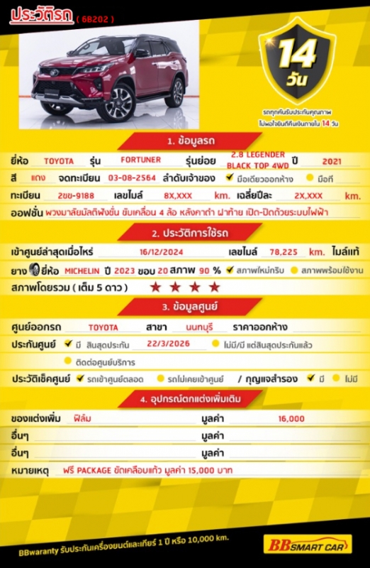 BB Care Plus รับประกันหลังการขาย สูงสุด 2 ปี หรือ 20,000 km..