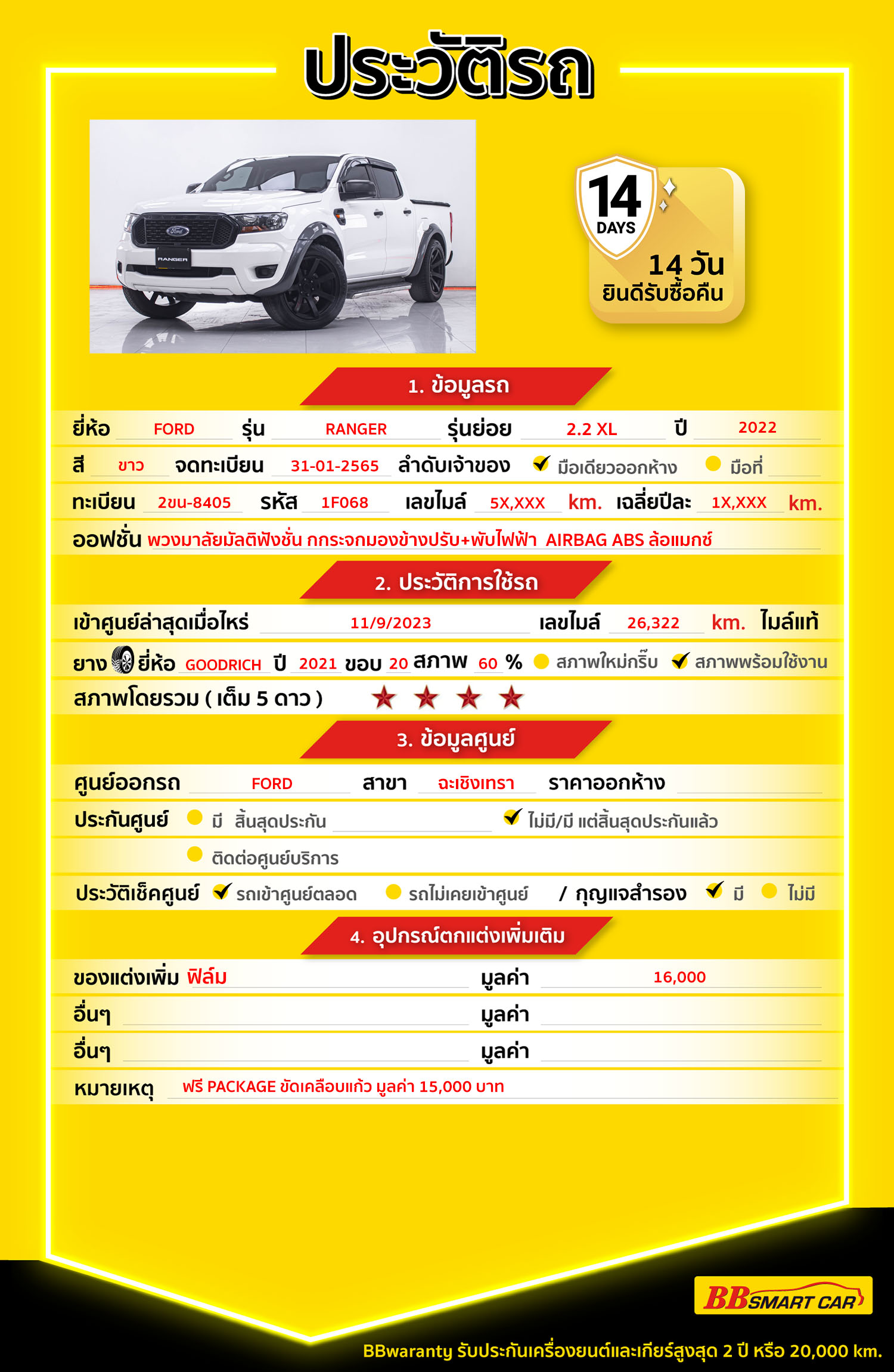 BB Care Plus รับประกันหลังการขาย สูงสุด 2 ปี หรือ 20,000 km.
