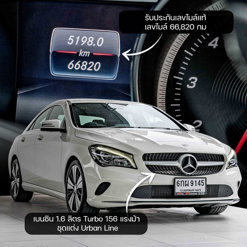 รุ่นรถ : BENZ CLA200 URBAN ปีรถ : 2017 เลขไมล์ : 66,8xx กิโล ทะเบียน : 6กผ9145 กทม.