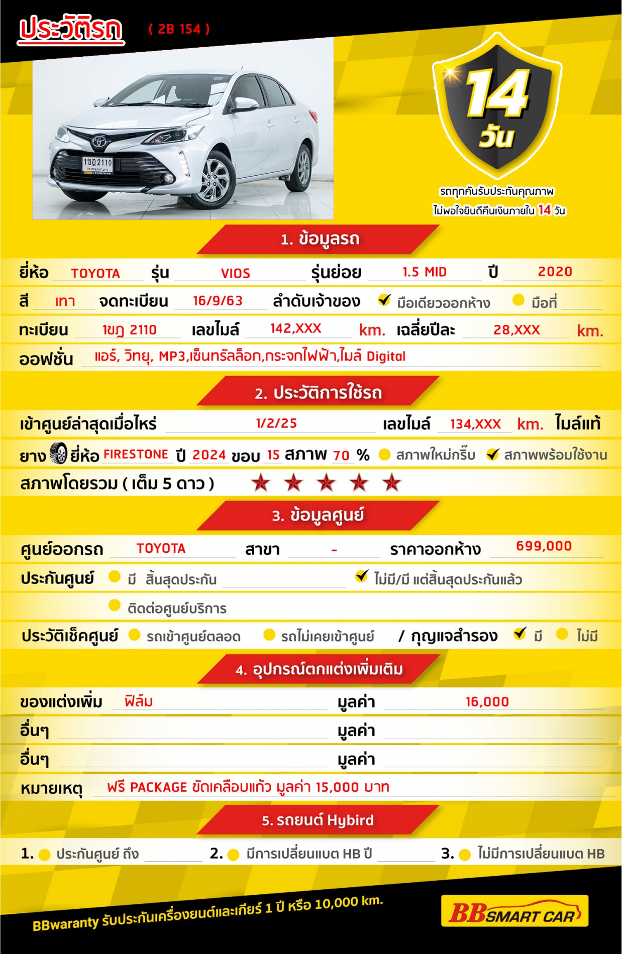 Car Hightlight รถสวยๆ วันนี้ขอแนะนำ TOYOTA VIOS 1.5 MID AT เบนซิน