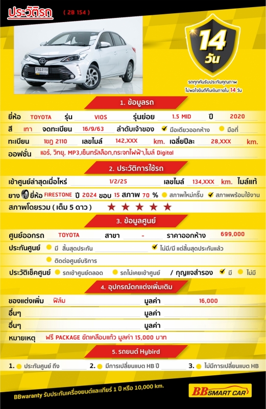 ออกรถ 0 บาท รหัสรถ 2B154 Line ID : @bbcar02