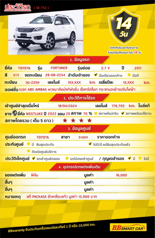 - BB Care Plus รับประกันหลังการขาย สูงสุด 2 ปี หรือ 20,000 km.