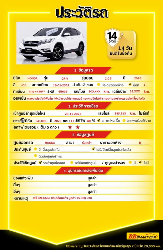 BB Care Plus รับประกันหลังการขาย สูงสุด 2 ปี หรือ 20,000 km..