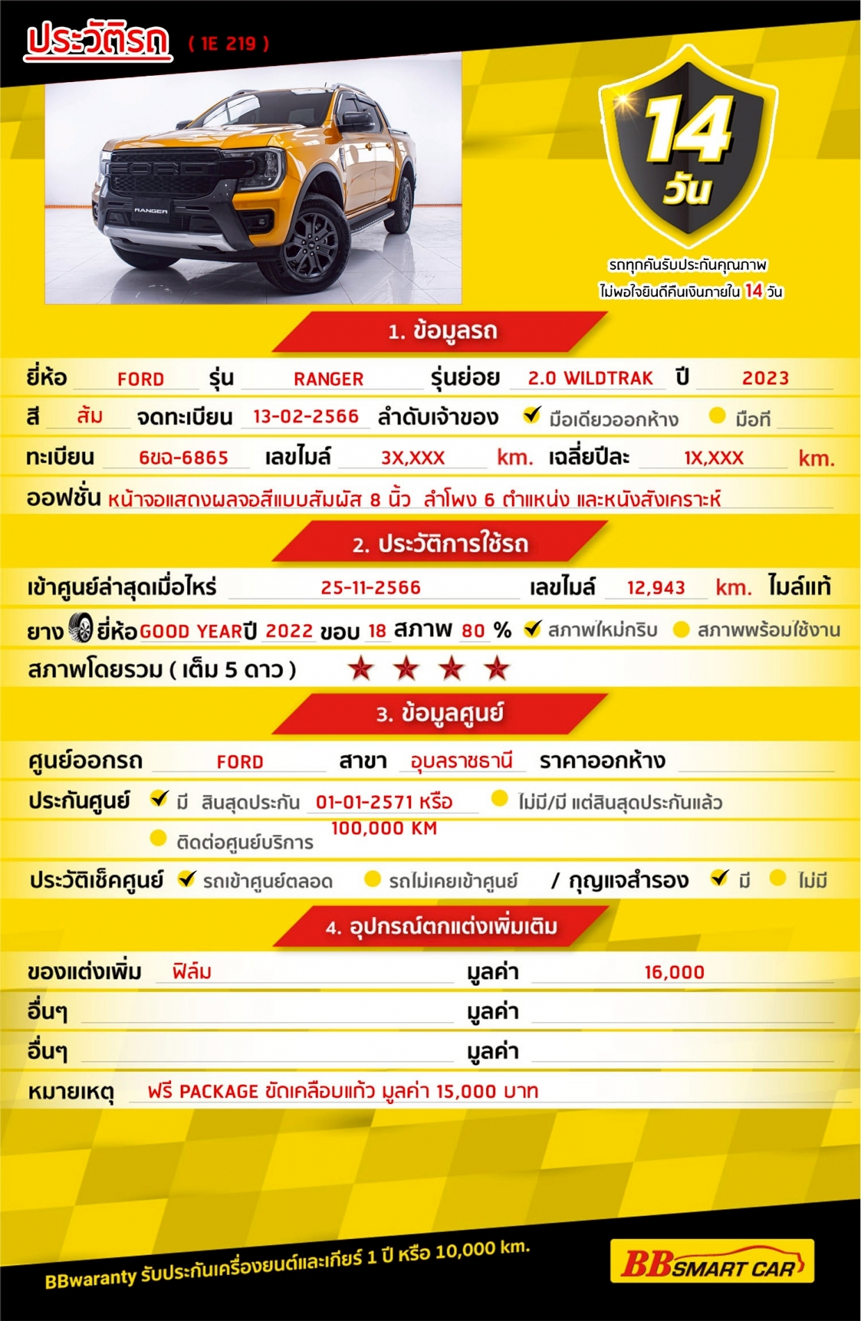 - BB Care Plus รับประกันหลังการขาย สูงสุด 2 ปี หรือ 20,000 km..