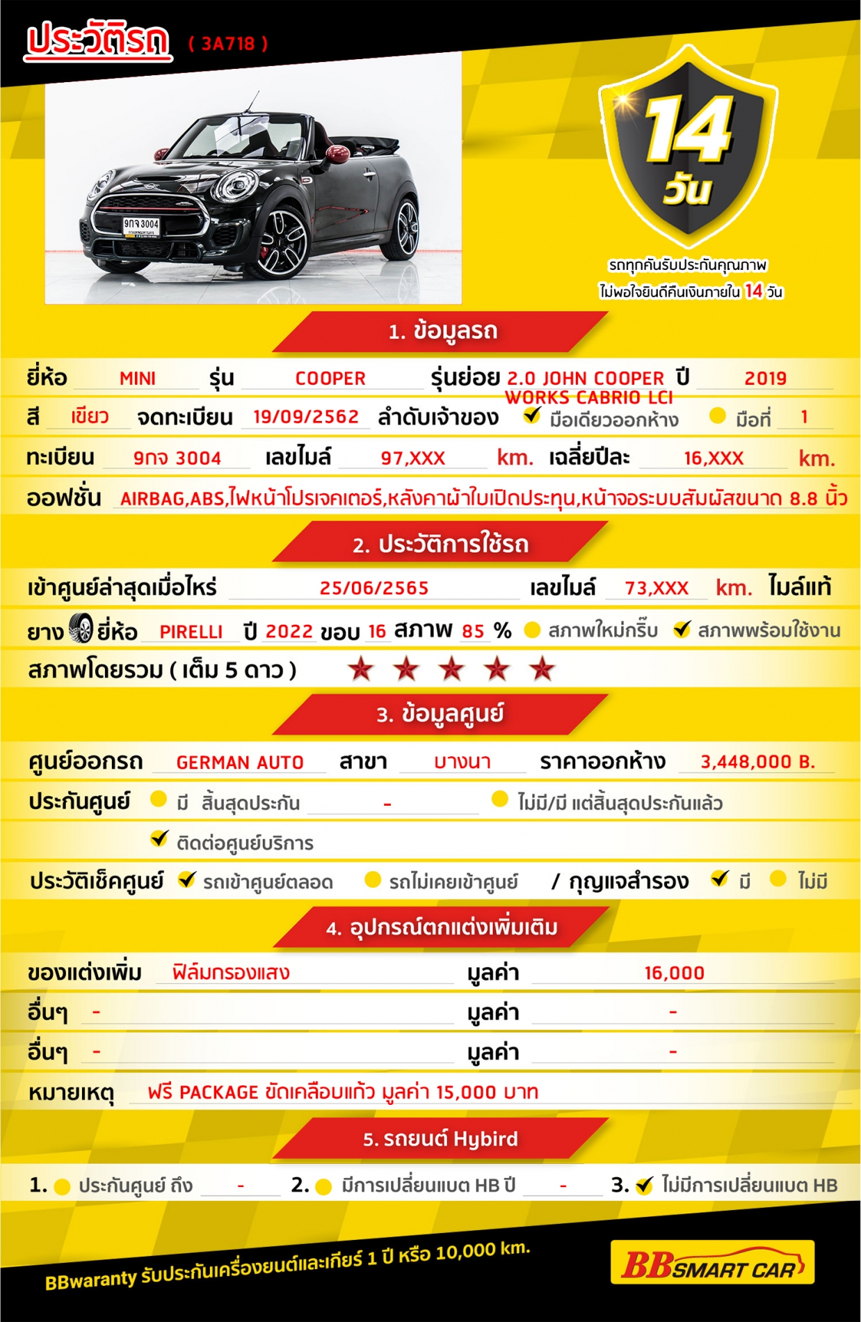 Model. : COOPER Grade. : 2.0 JOHN COOPER WORKS CABRIO LCI
