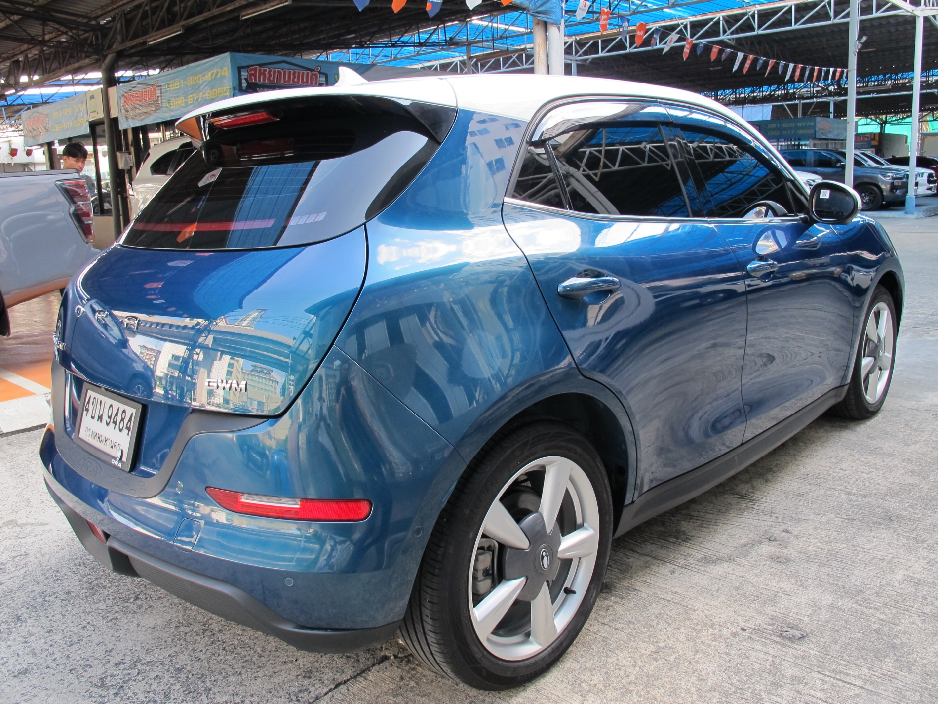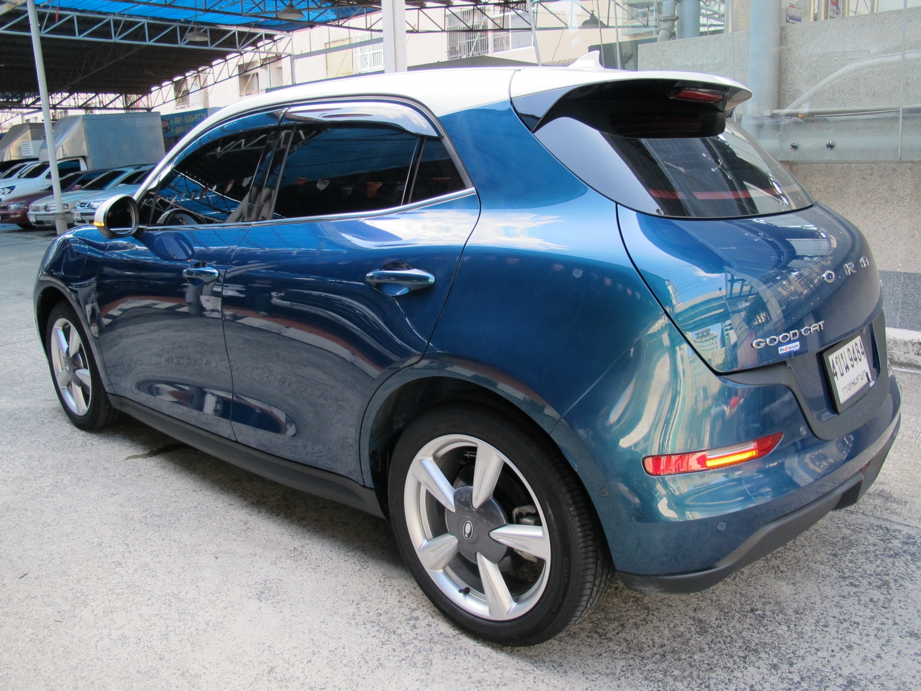 2023 ORA GOOD CAT EV 500 ULTRA เกียร์AUTO สีเขียว-ขาว ปุ่มSTART เบาะหนังปรับไฟฟ้า พวงมาลัยมัลติ หลังคากระจก Panoramic Sunroof กล้องรอบคัน วิ่งน้อย 36,625 กม. รถสวยสภาพใหม่ มือเดียว พร้อมสายชาร์ต ราคา 489,000 บาท
