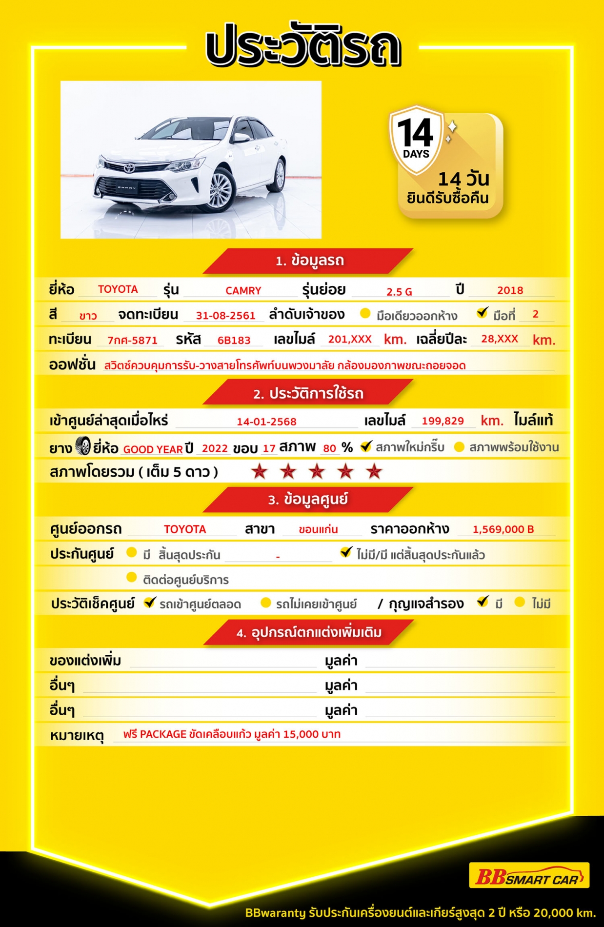 BB Care Plus รับประกันหลังการขาย สูงสุด 2 ปี หรือ 20,000 km..