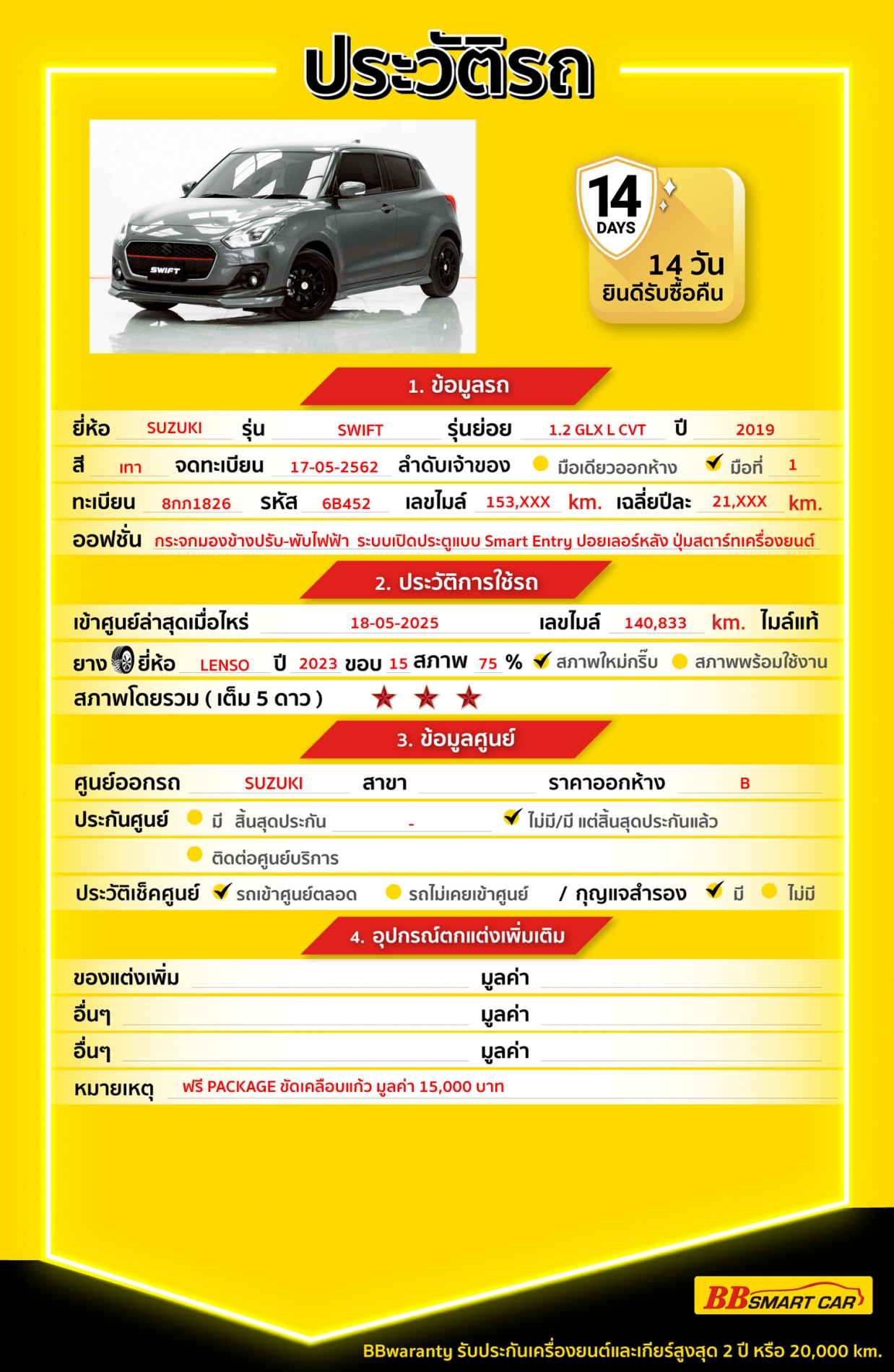 BB Care Plus รับประกันหลังการขาย สูงสุด 2 ปี หรือ 20,000 km..