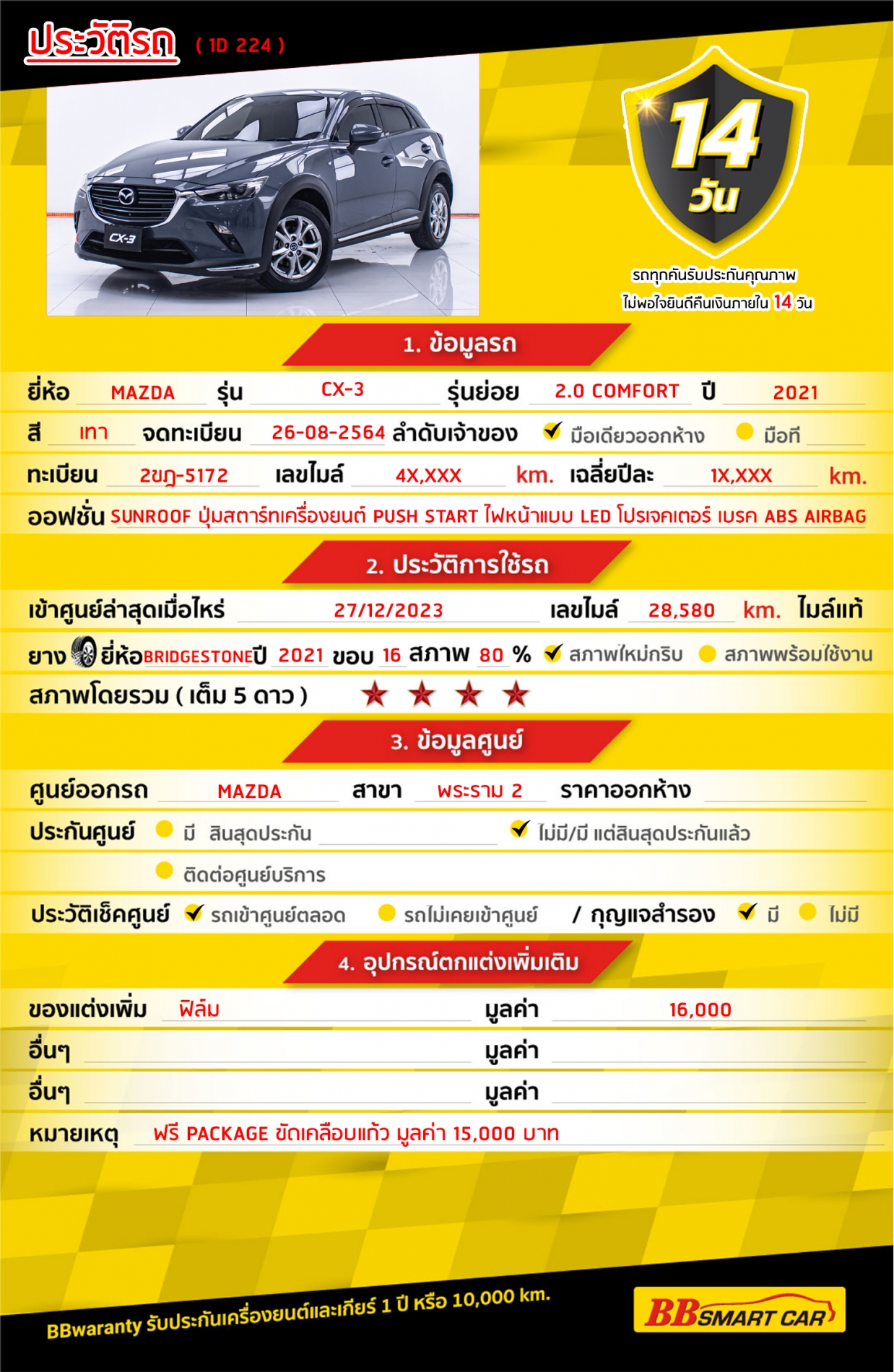 - BB Care Plus รับประกันหลังการขาย สูงสุด 2 ปี หรือ 20,000 km..