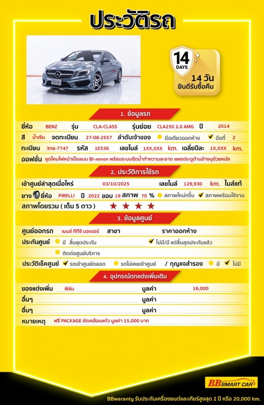 - BB Care Plus รับประกันหลังการขาย สูงสุด 2 ปี หรือ 20,000 km.