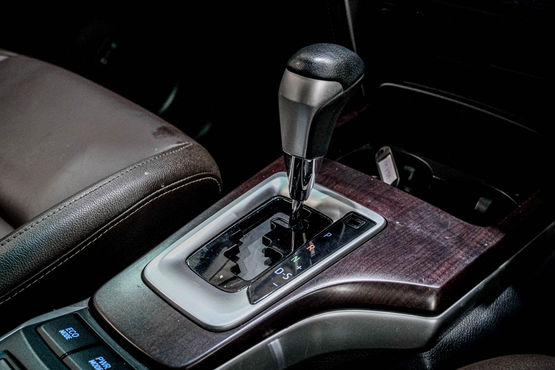 ✅ หัวเกียร์หุ้มหนัง พร้อมแถบสีเงิน ฐานเกียร์ตกแต่งลายไม้ / แถบสีเงิน