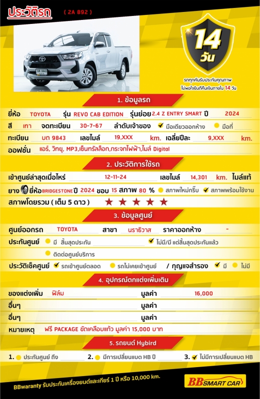 BB Care Plus รับประกันหลังการขาย สูงสุด 2 ปี หรือ 20,000km.
