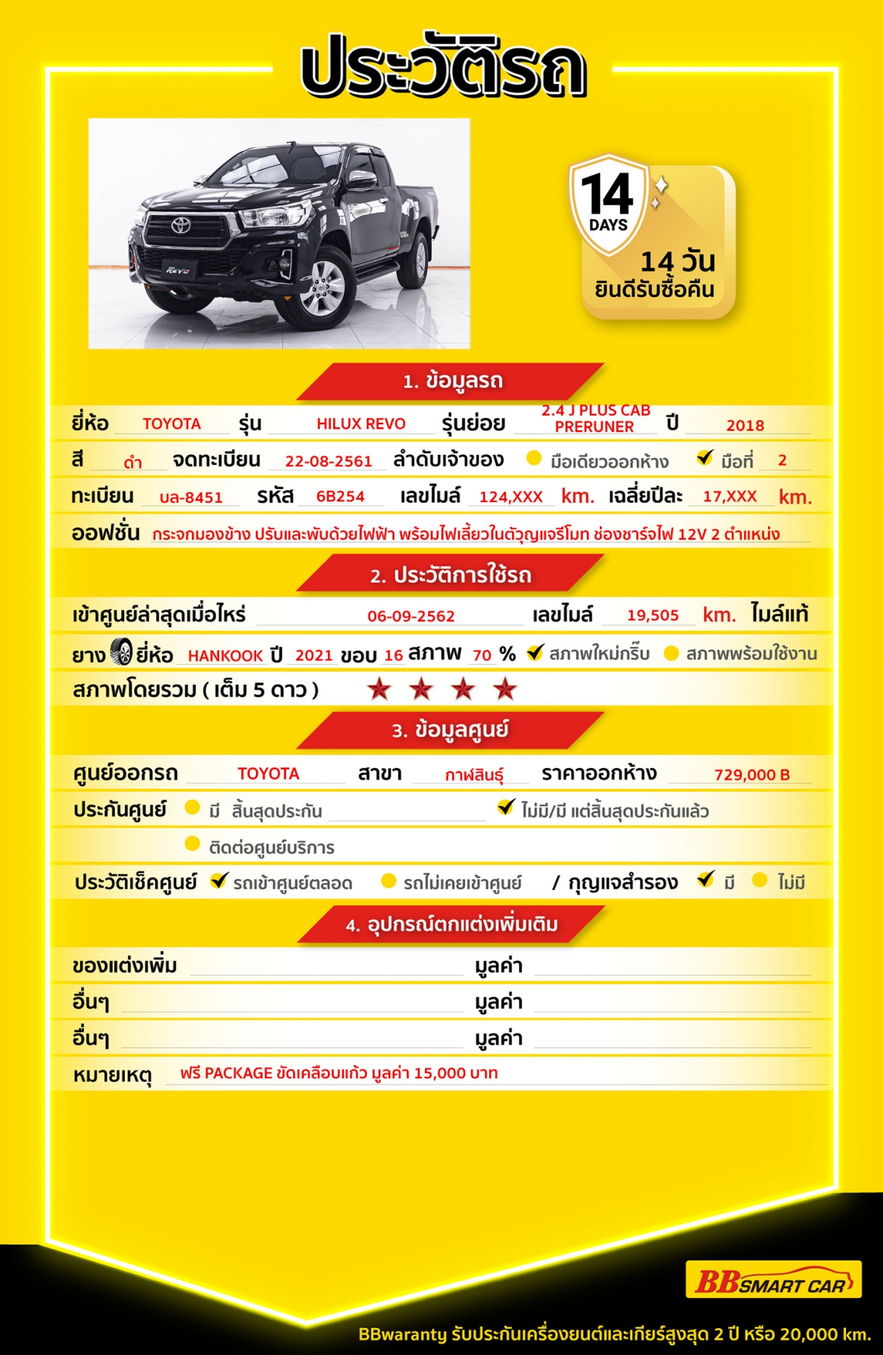 Car Hightlight รถสวยๆ วันนี้ขอแนะนำ TOYOTA HILUX REVO 2.4 J PLUS CAB PRERUNER MT 2018