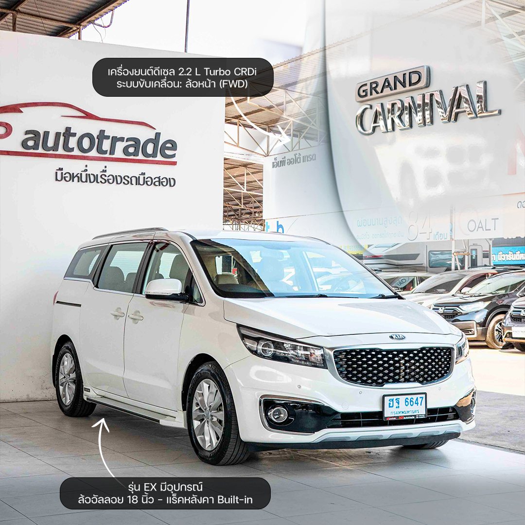 รุ่นรถ : KIA GRAND CARNIVAL 2.2EX ปีรถ : 2018 เลขไมล์ : 166,1xx กิโล ทะเบียน : ฮฐ6647 กทม.