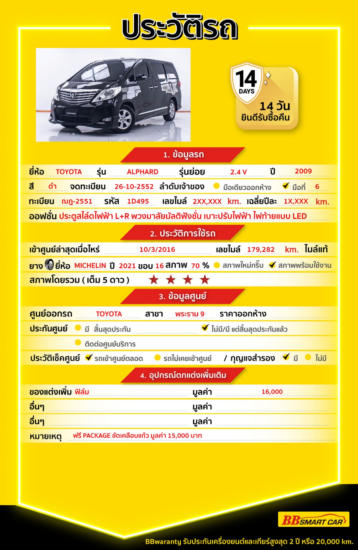 - BB Care Plus รับประกันหลังการขาย สูงสุด 2 ปี หรือ 20,000 km.