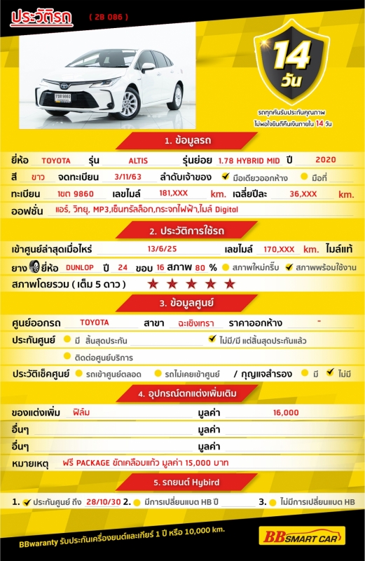 BB Care Plus รับประกันหลังการขาย สูงสุด 2 ปี หรือ 20,000km.