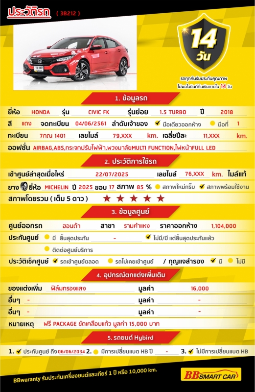 - BB Care Plus รับประกันหลังการขาย สูงสุด 2 ปี หรือ 20,000 km.