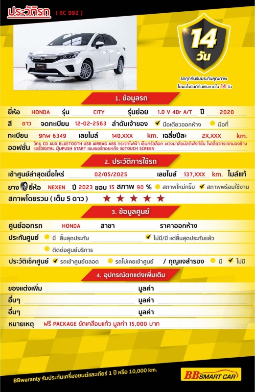 BB Care Plus รับประกันหลังการขาย สูงสุด 2 ปี หรือ 20,000 km.