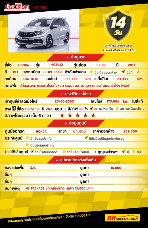 - BB Care Plus รับประกันหลังการขาย สูงสุด 2 ปี หรือ 20,000 km.