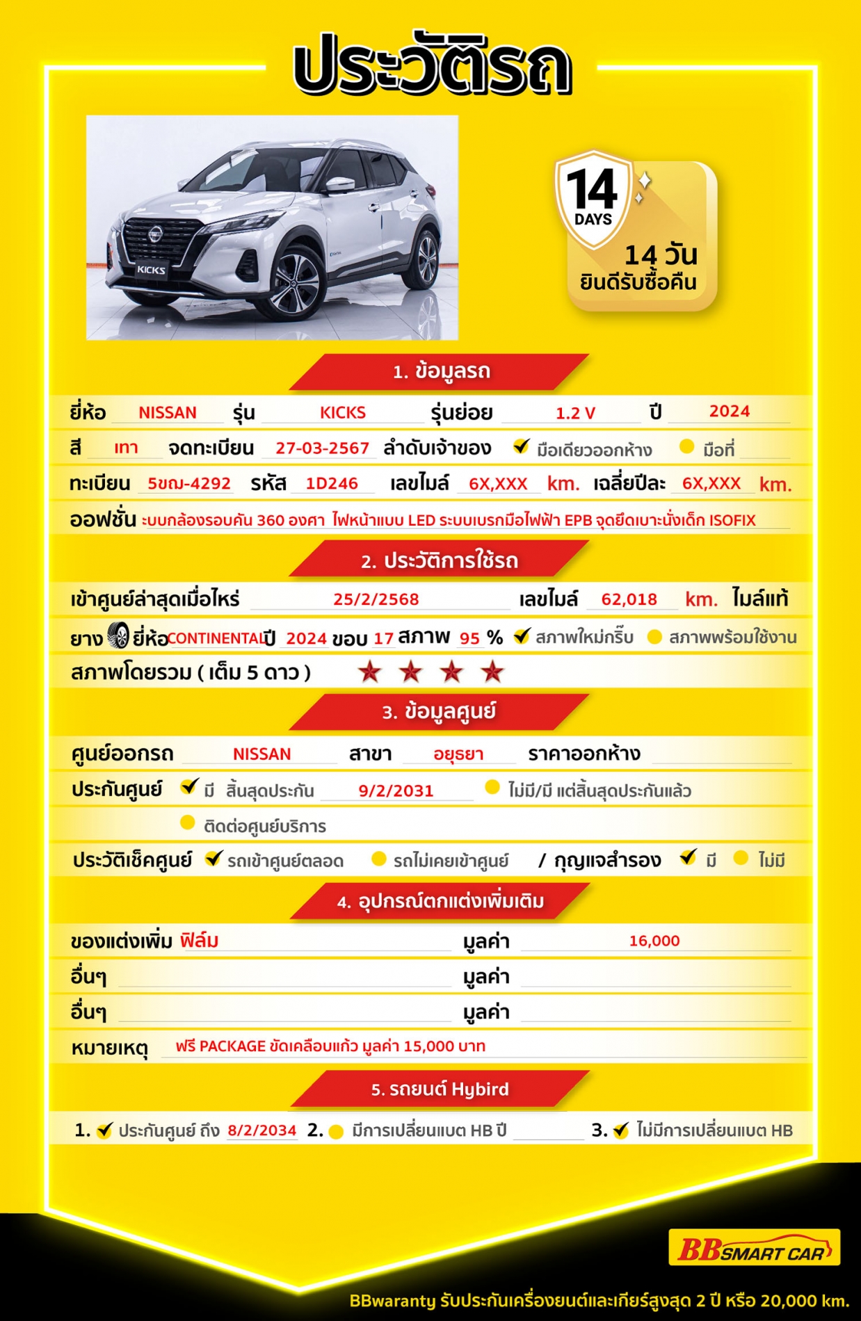 - BB Care Plus รับประกันหลังการขาย สูงสุด 2 ปี หรือ 20,000 km.
